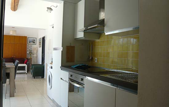 Cuisine entièrement équipée avec lave-vaisselle et lave-linge.